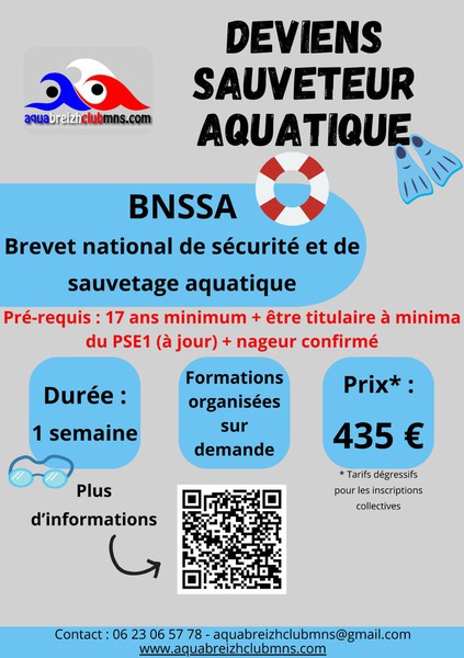 Aqua Breizh Club MNS, affiliée à la FFMNS et conventionné avec le CFA Sport Bretagne, propose des formations :